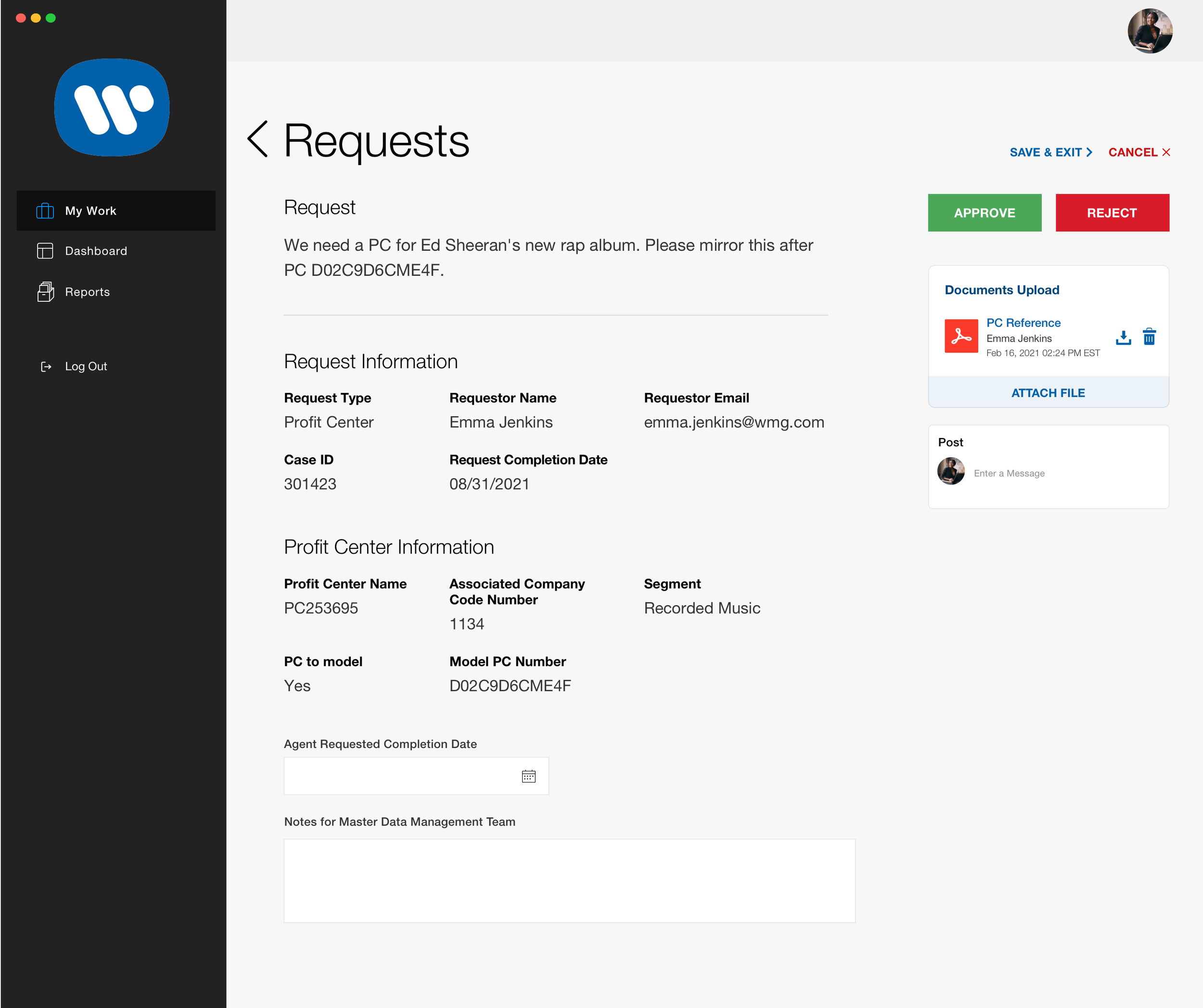 Prior to this project, Warner Music had no standardized system to manage its internal customer service. Each department has its unique workflows and expectations in handling the requests. With in-depth research and ideation, I designed an all-in-one Case Management System, a Chatbot, and a new automated file processing experience.