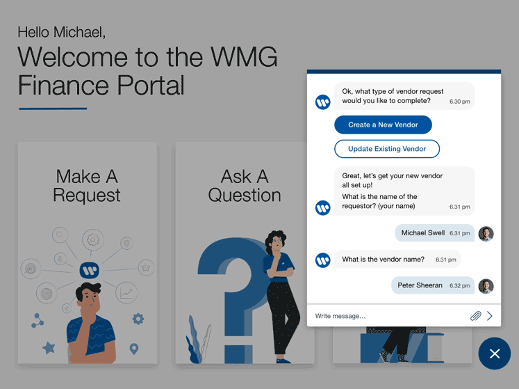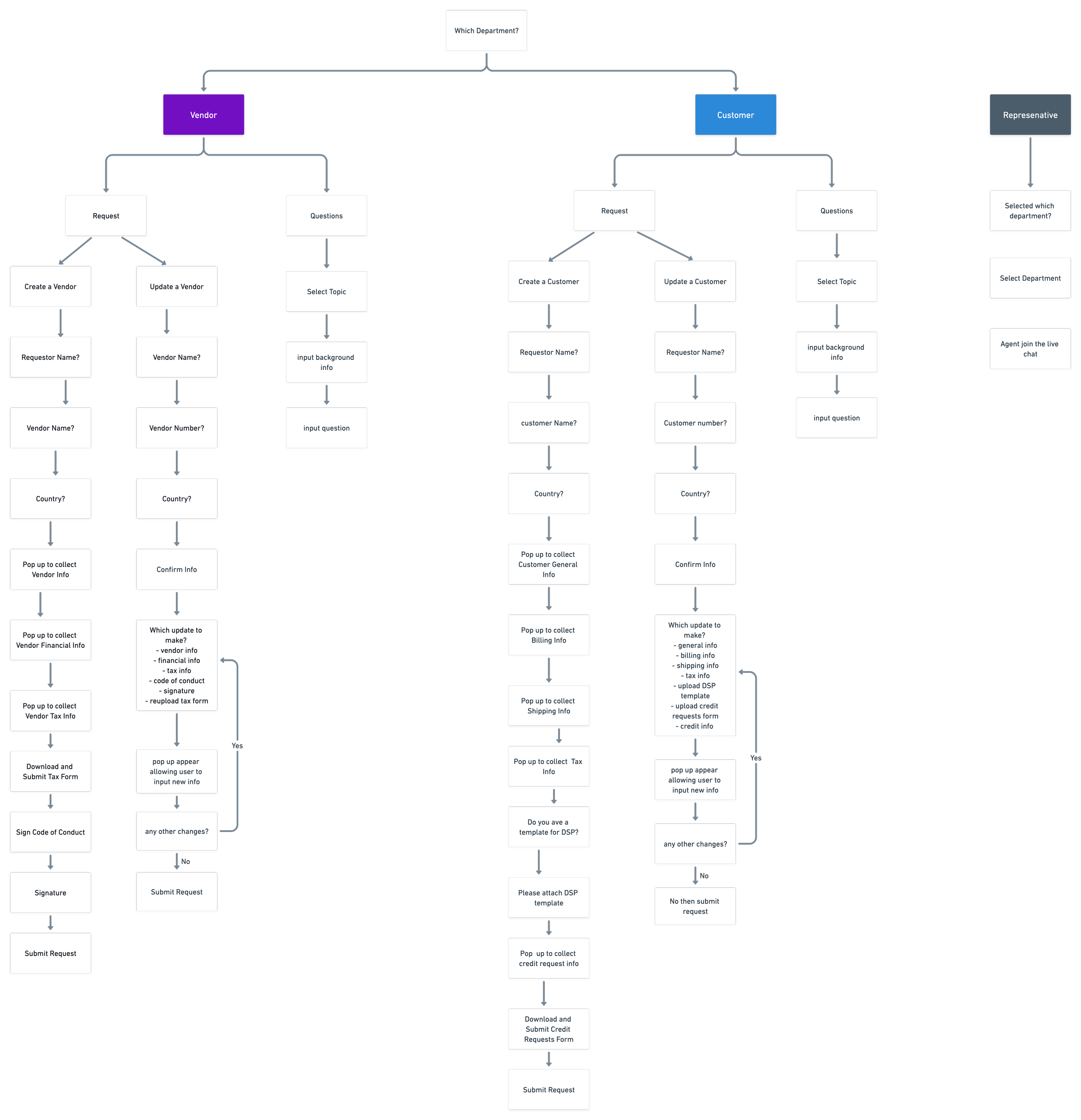 I created a Chatbot to guide the Requestor to complete vendor/customer creation and updates. If the Requestors faced any issues, the Agent could jump in and provide immediate help, which greatly enhances users' engagement and satisfaction.